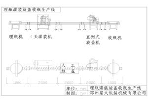 4頭理瓶-灌裝-人工放蓋直旋-收瓶生產線