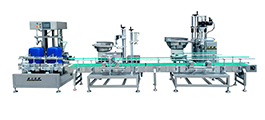 顆粒灌裝生產線是由全自動理瓶機、顆粒自動稱重灌裝機、自動封罐機、直線式旋蓋機、不干膠貼標機、收瓶機組成。